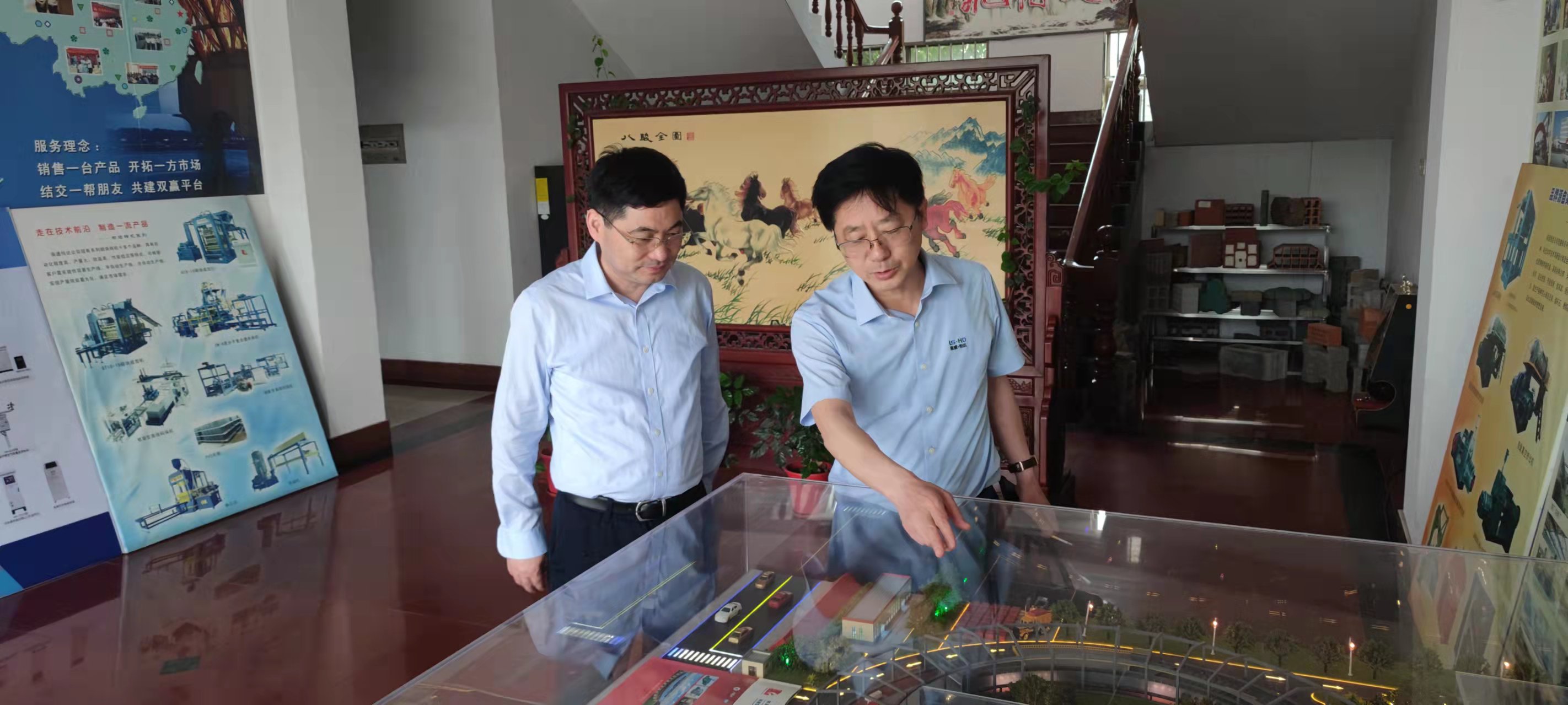 產(chǎn)廠區(qū),現(xiàn)場聽取了公司董事長崔恒全及技術人員的研發(fā)生產(chǎn)等情況介紹,詳細了解了移動式隧道窯工作原理及實際使用中的節(jié)能高產(chǎn)情況和